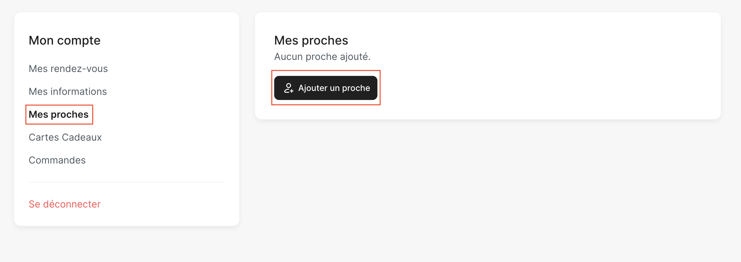 Ajouter un proche depuis Mon compte > Mes proches