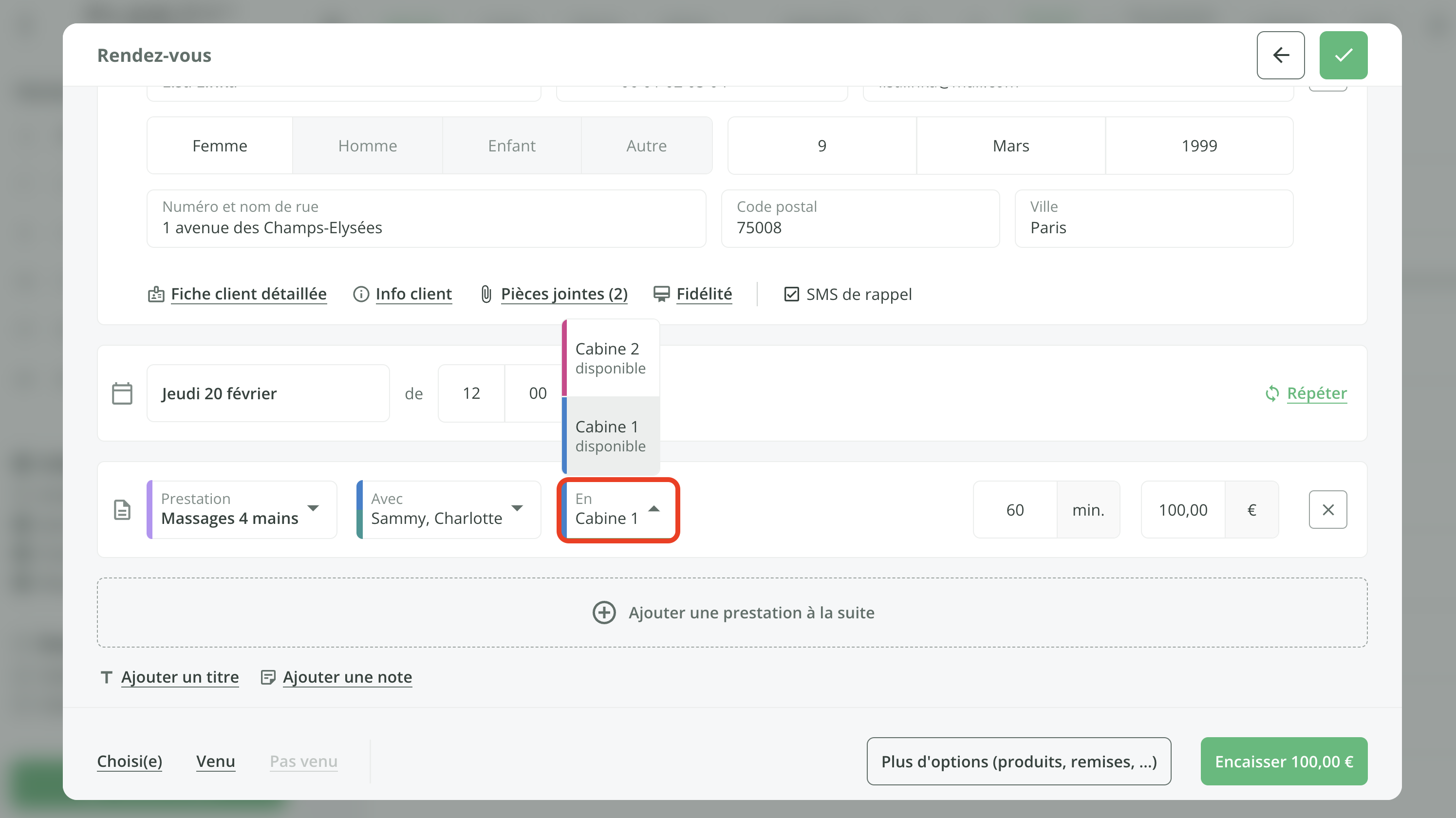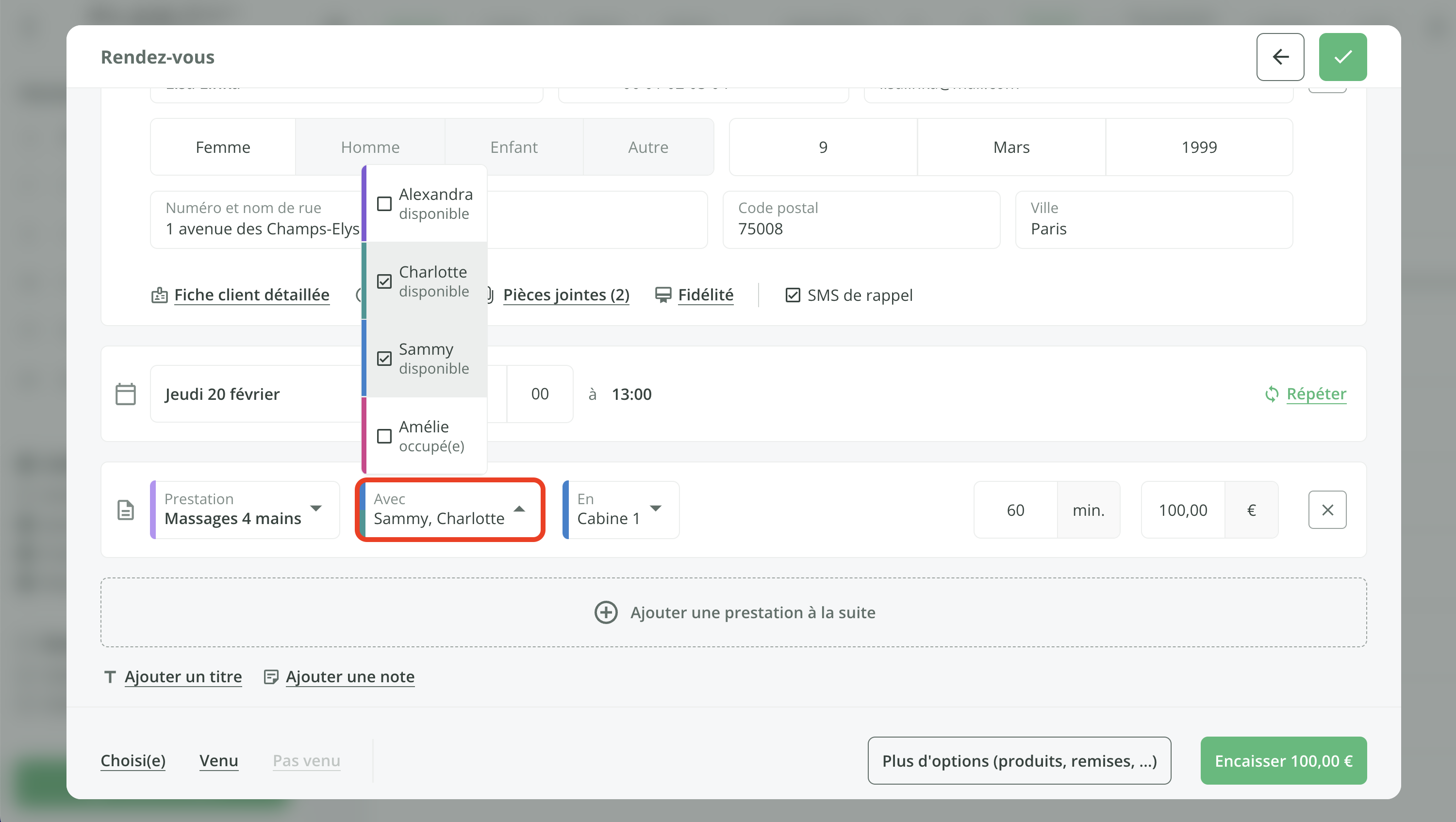 - Cliquez sur le rendez-vous concernant une prestation à plusieurs collaborateurs ou ressources.