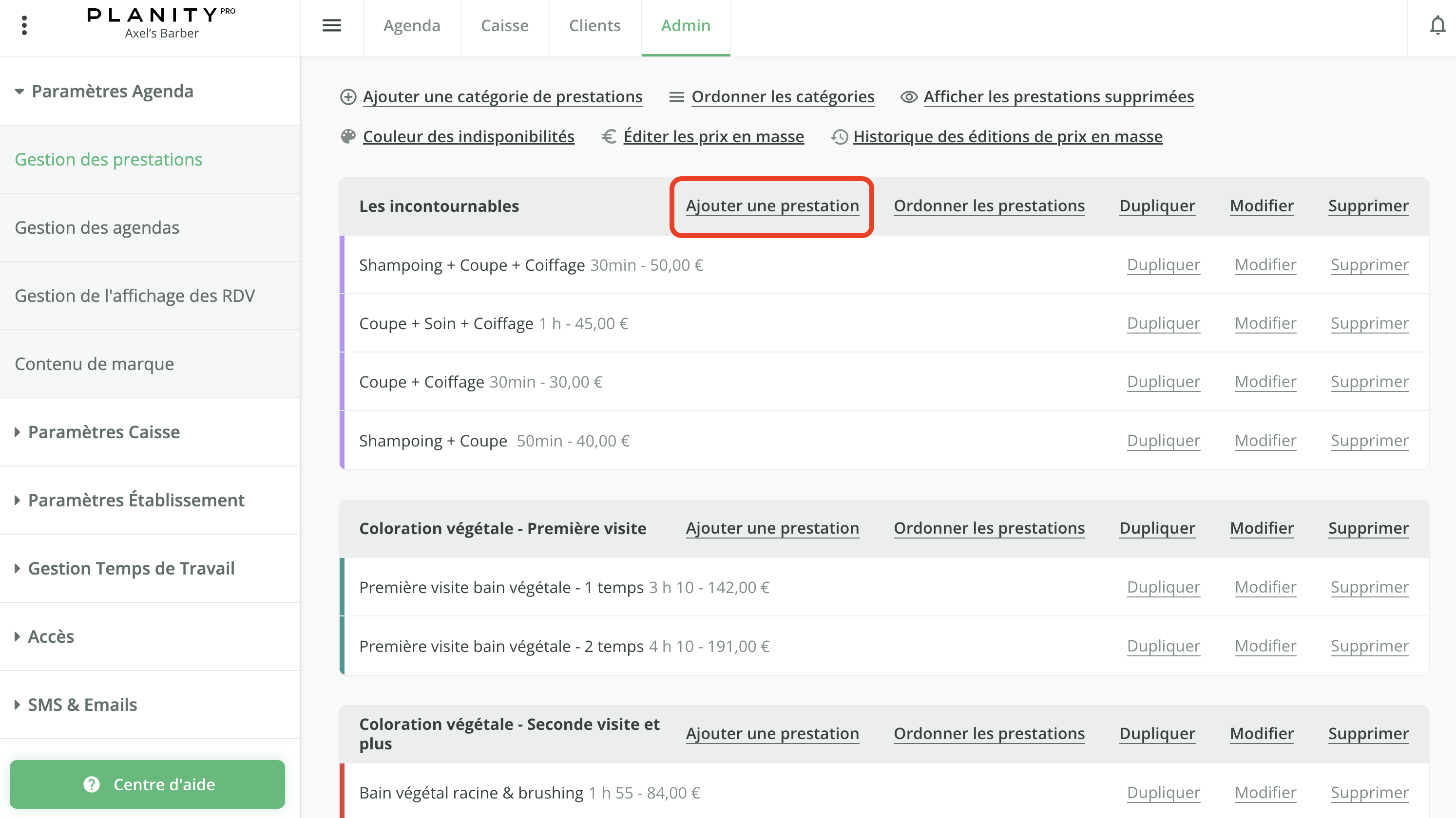 - Cliquez sur Ajouter une prestation dans la catégorie de prestations souhaitée.