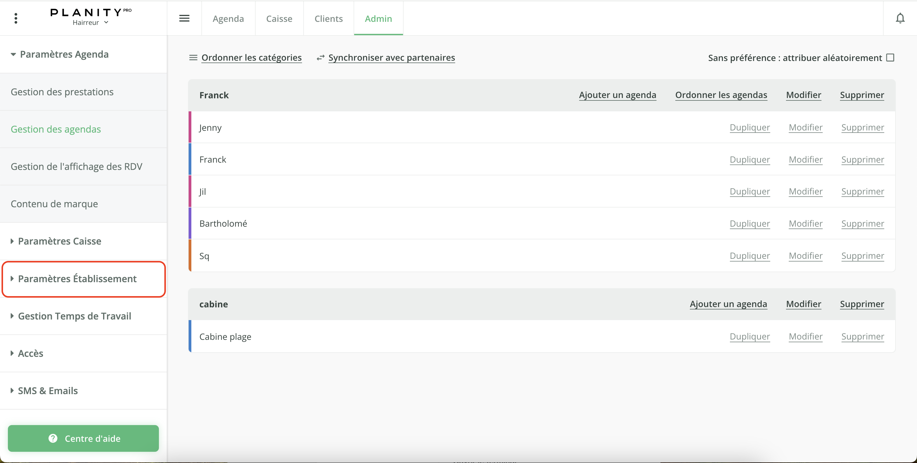 - Cliquez sur "Paramètres Établissement" sur le côté gauche de votre écran