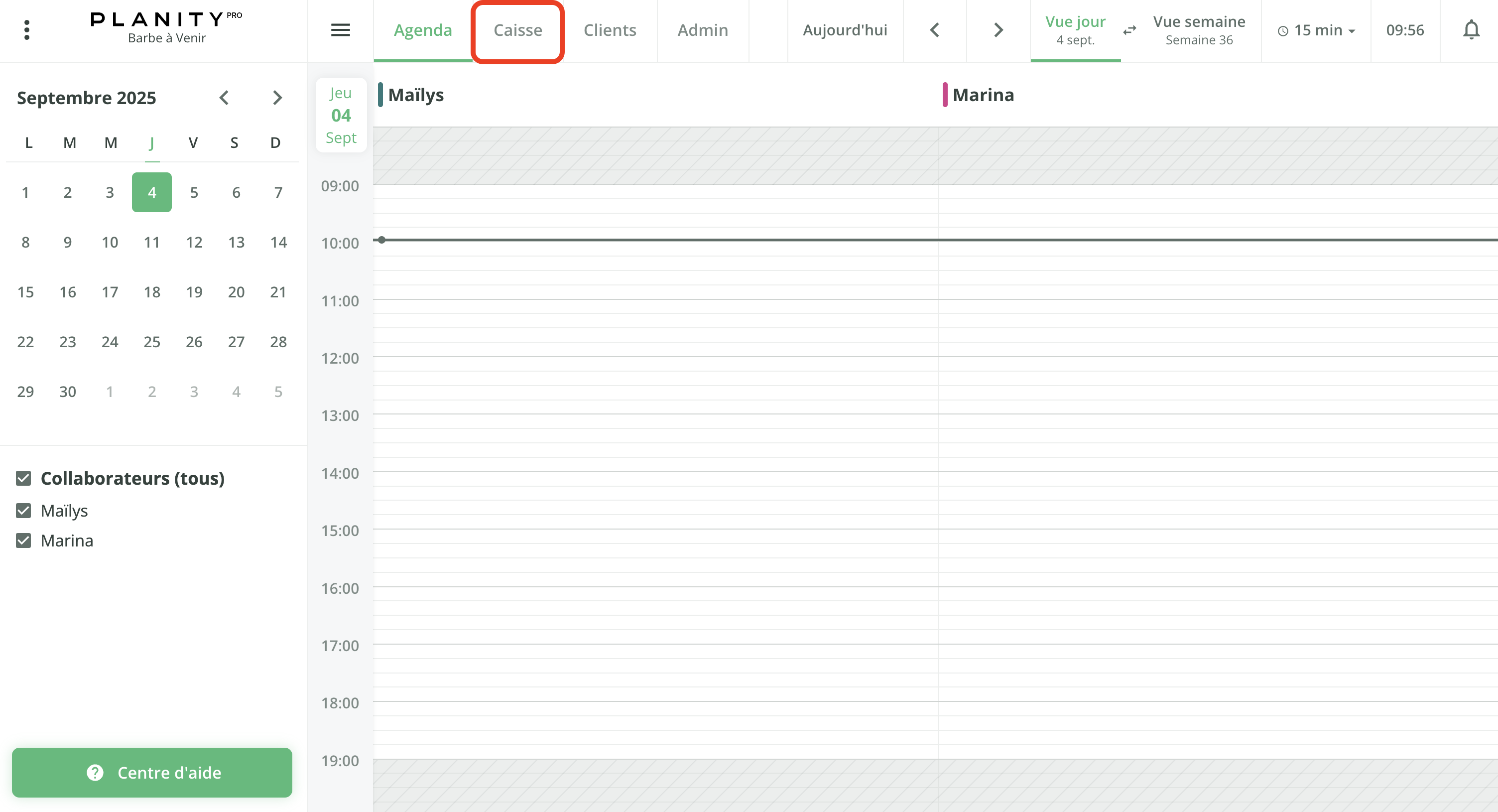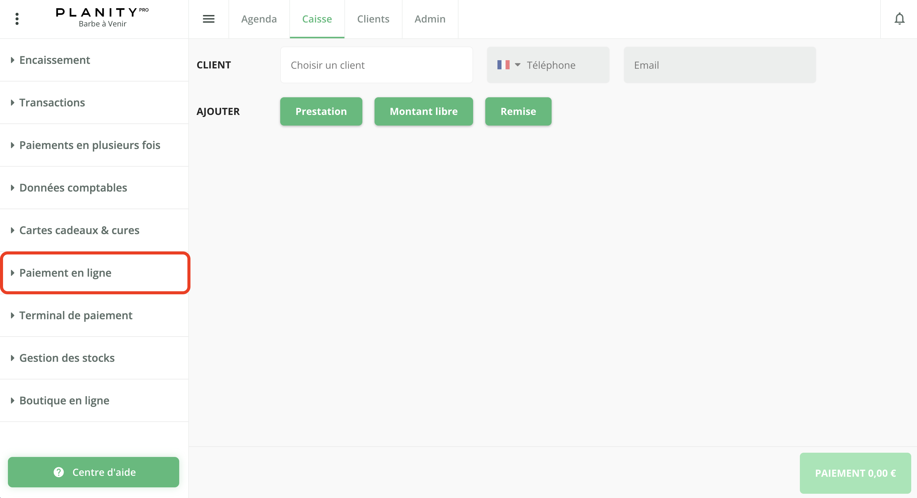 - Pour activer le paiement en ligne avec Stripe, cliquez sur l'onglet Caisse ou sur l'onglet Admin dans le cas où vous ne possèdez pas la caisse.