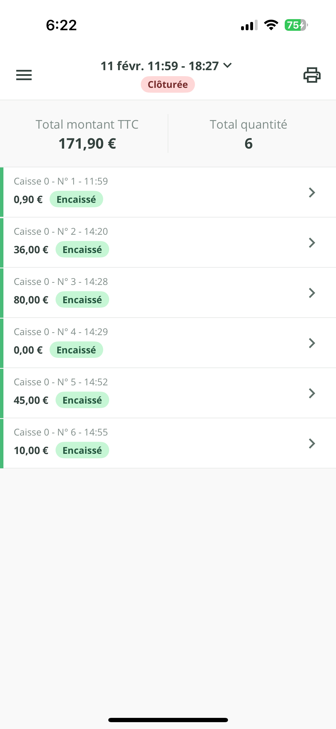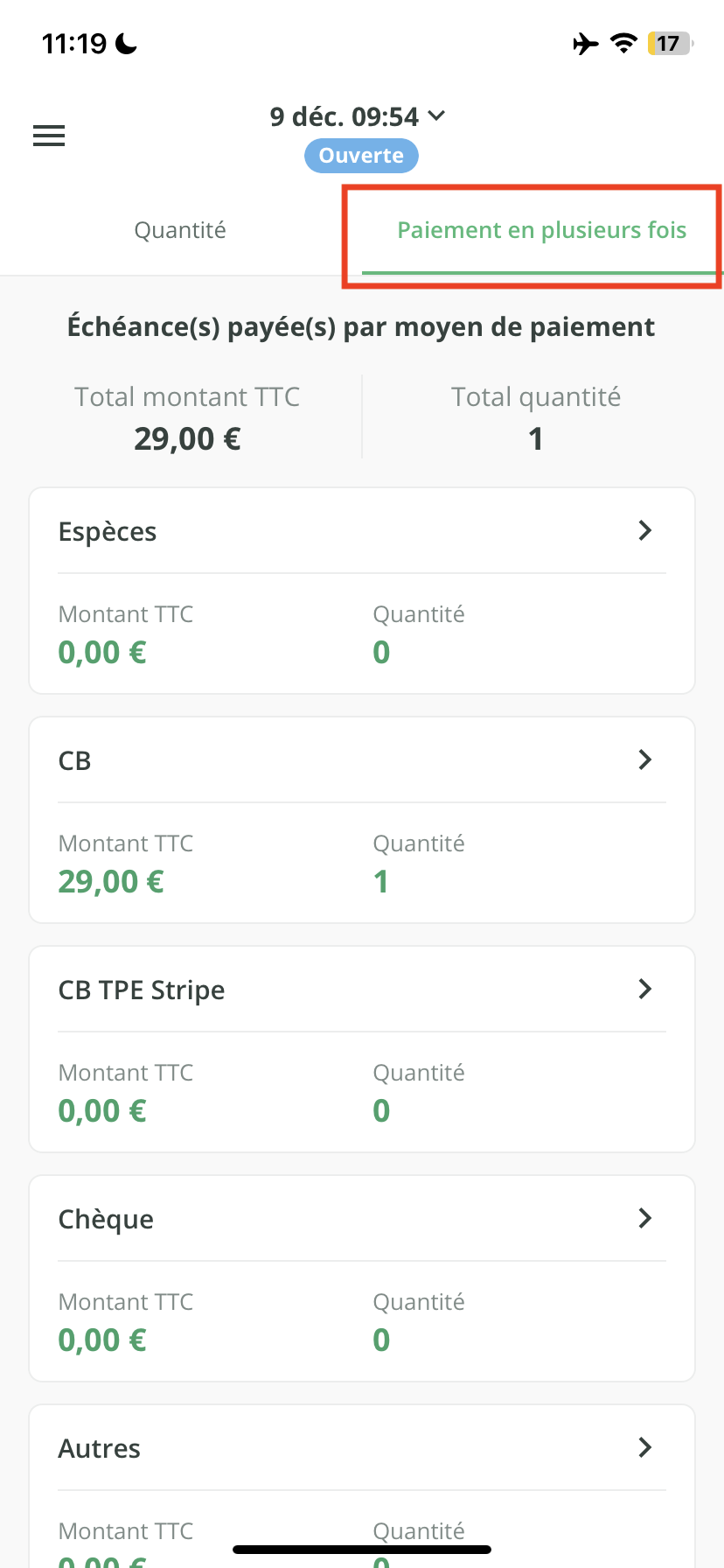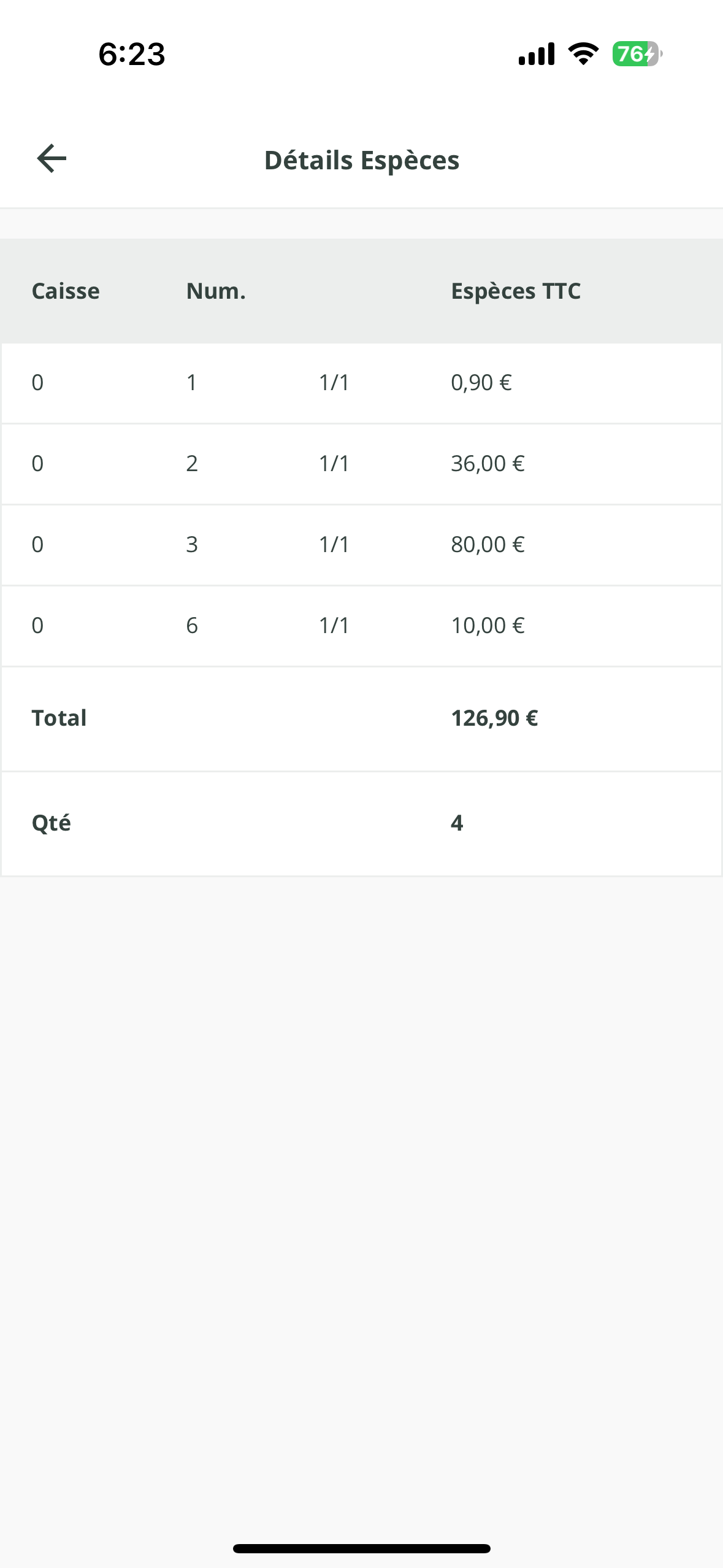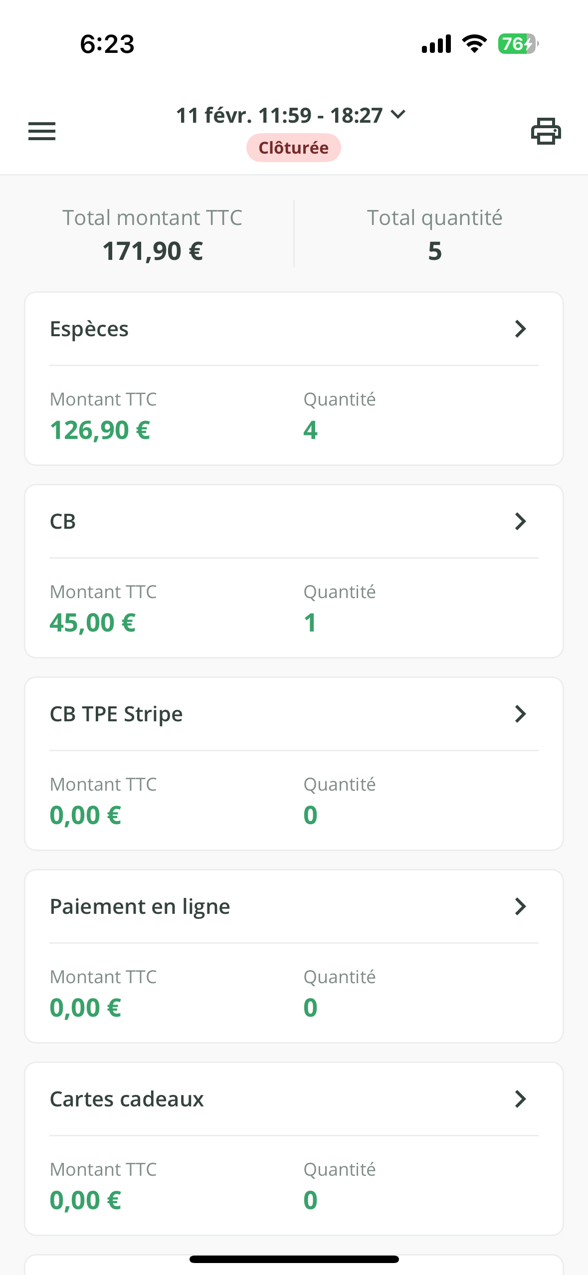- Sur cette page, retrouvez alors tous les paiements encaissés ou remboursés pendant la session de caisse. Ils sont triés par moyen de paiement.