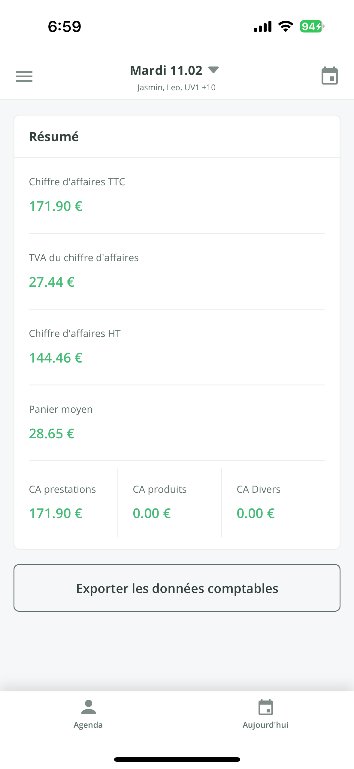 - Sur cette page, les statistiques de caisse apparaissent (appelées aussi données comptables), vous pouvez naviguer d'une période à l'autre en faisant défiler avec votre doigt.