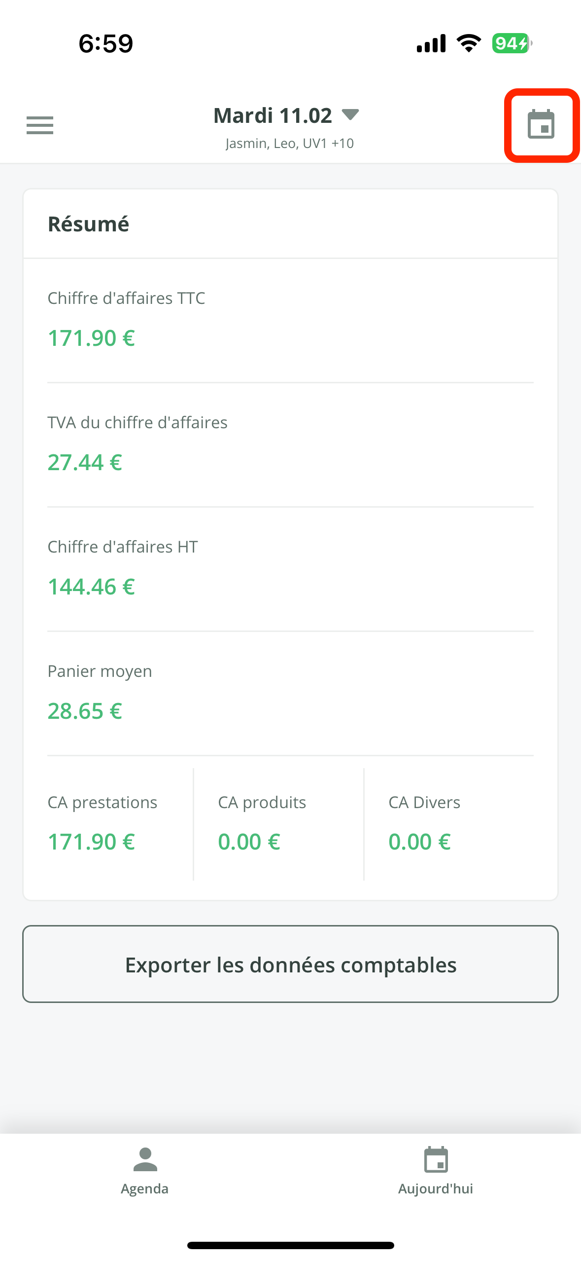 - (Optionnel) Cliquez en haut à droite sur le calendrier pour changer la période des statistiques de caisse (jour, semaine, mois, année)