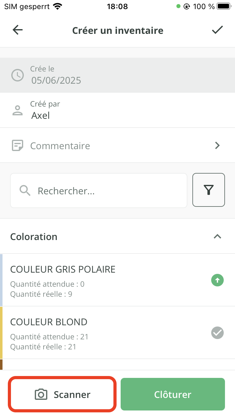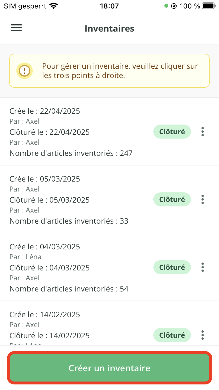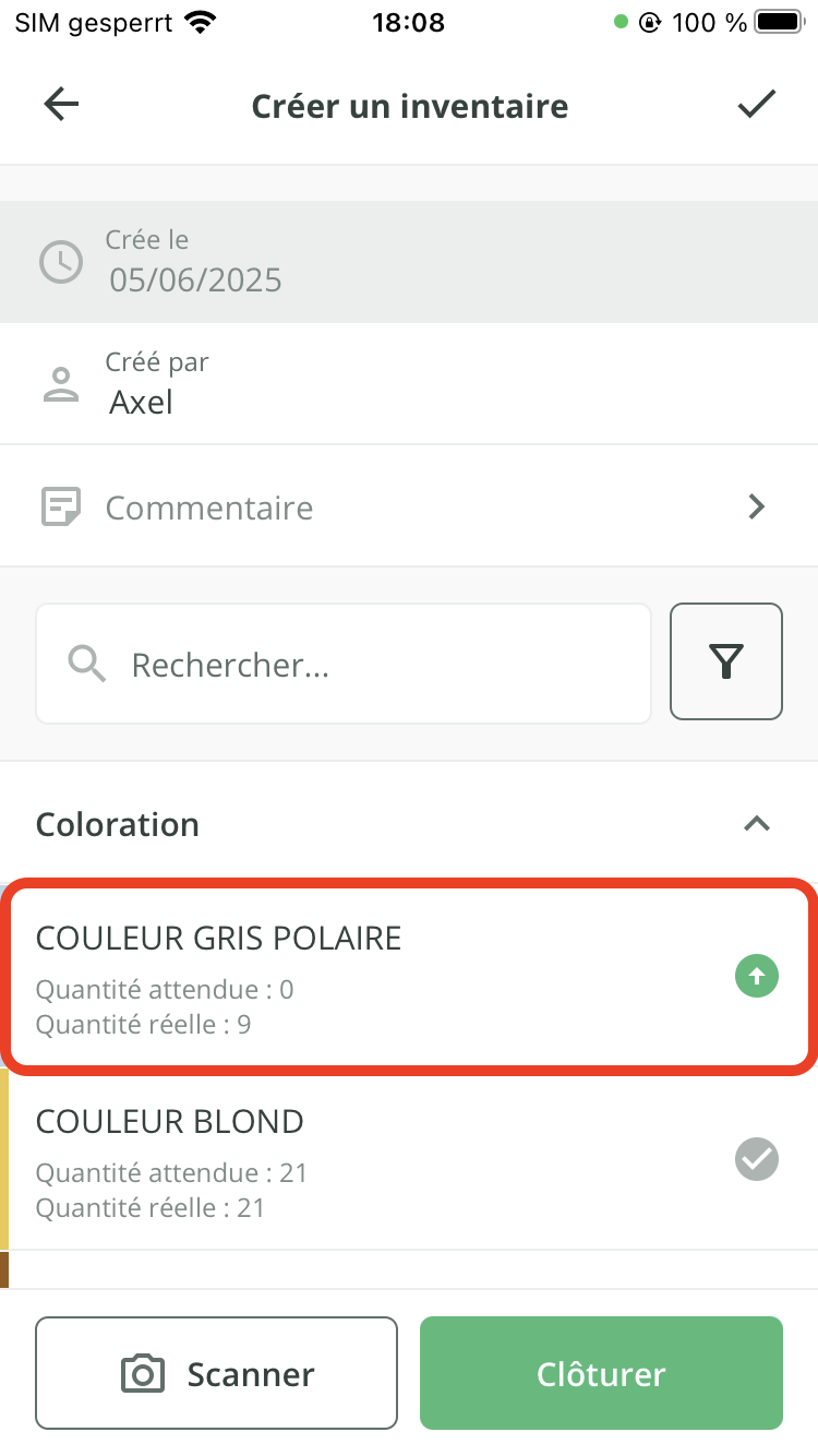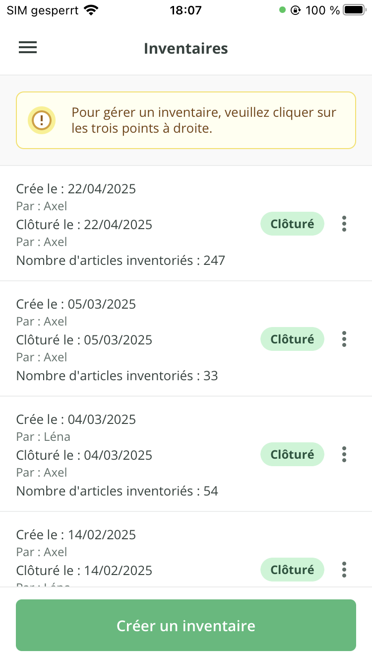 - Une fois clôturé (ou enregistré), votre inventaire apparaîtra dans la liste des inventaires.