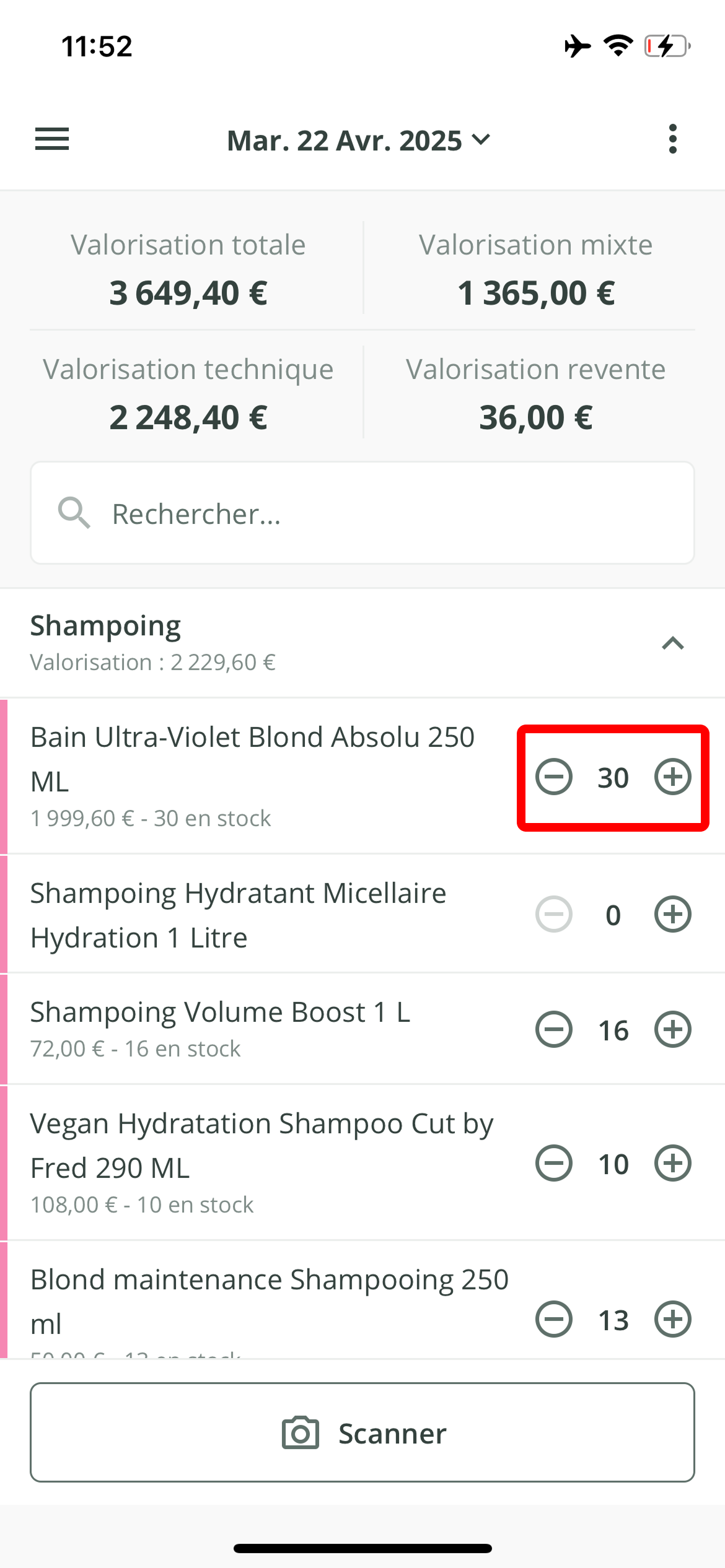 Cliquez sur le + ou le - en fonction de l'ajustement de quantité souhaité.