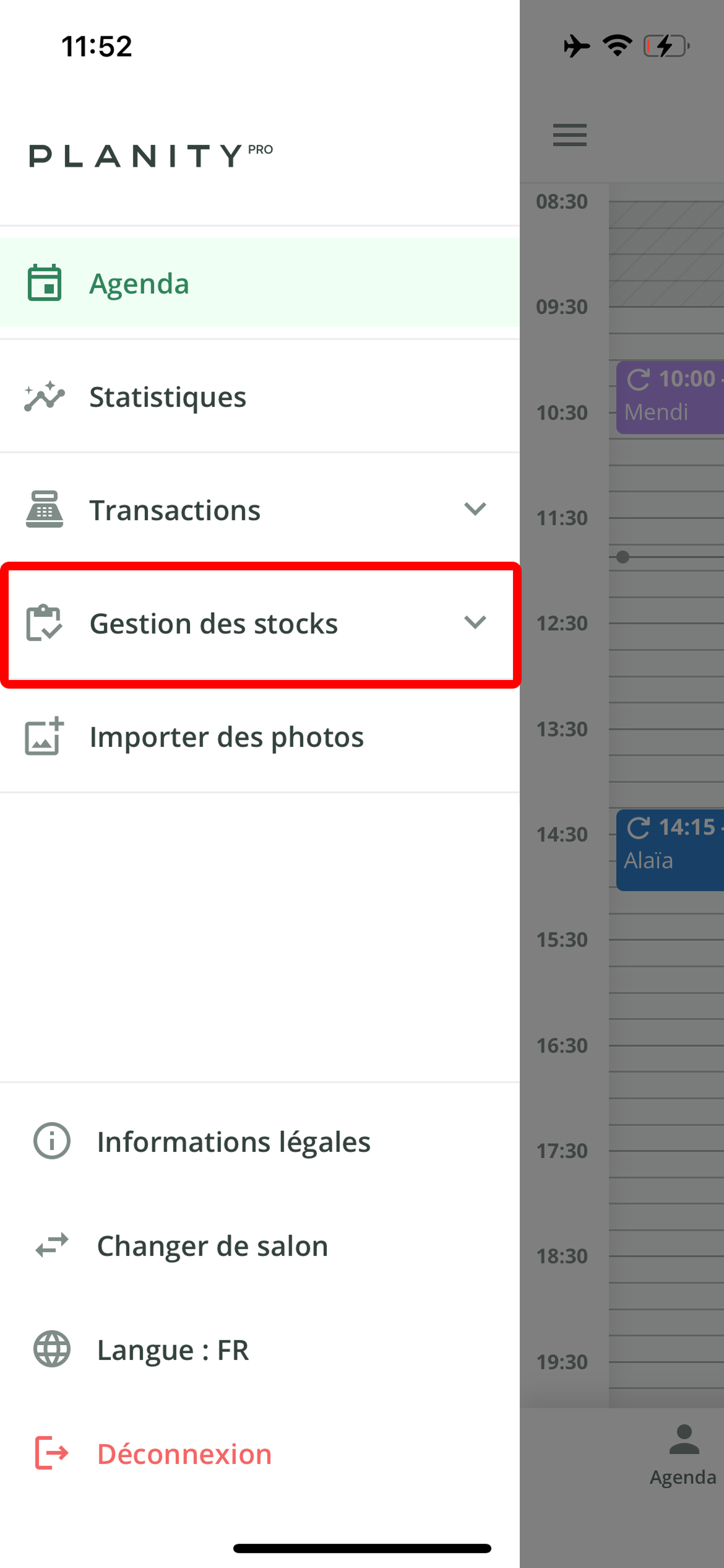 - Cliquez sur le menu Gestion des stocks.