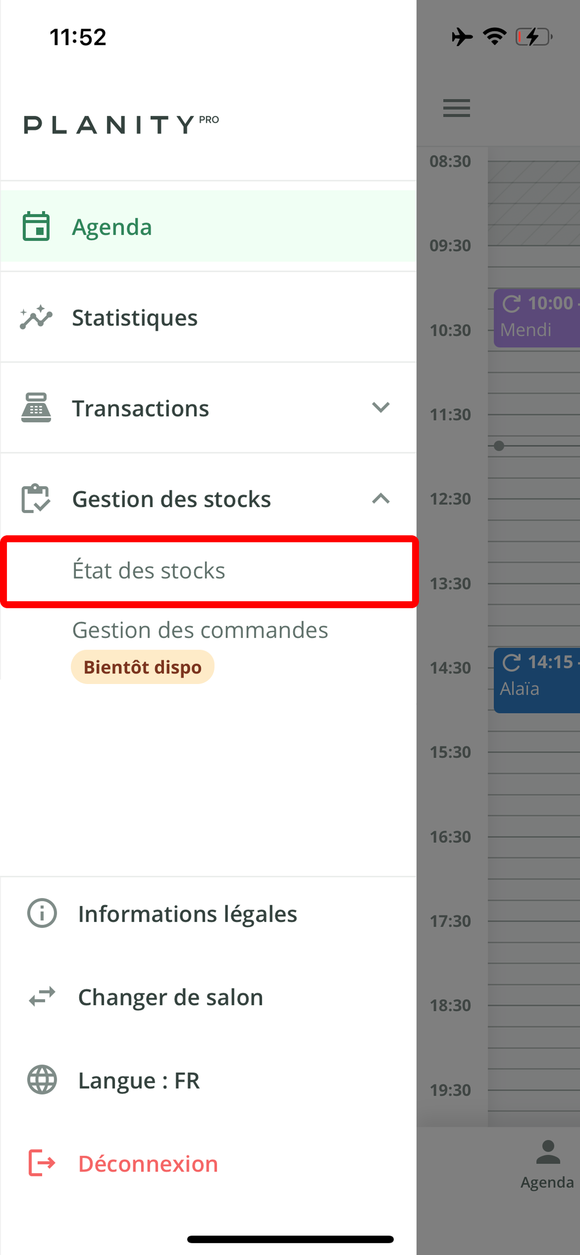 - Cliquez sur le sous-menu Etat des stocks.