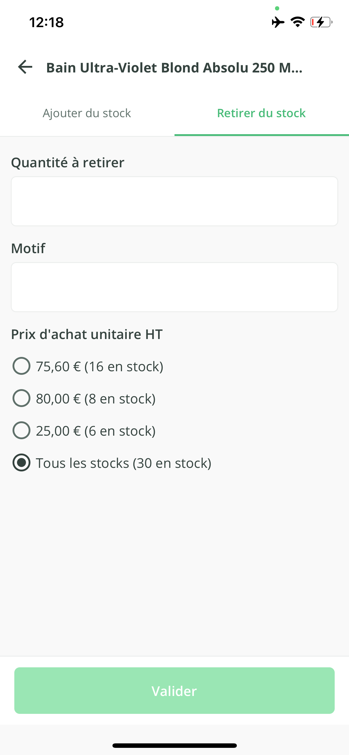- En cas de réduction, il vous suffit de saisir la quantité à enlever du stock. Vous pouvez indiquer un motif de ce retrait et vous pouvez sélectionner le prix d'achat HT des produits à supprimer.