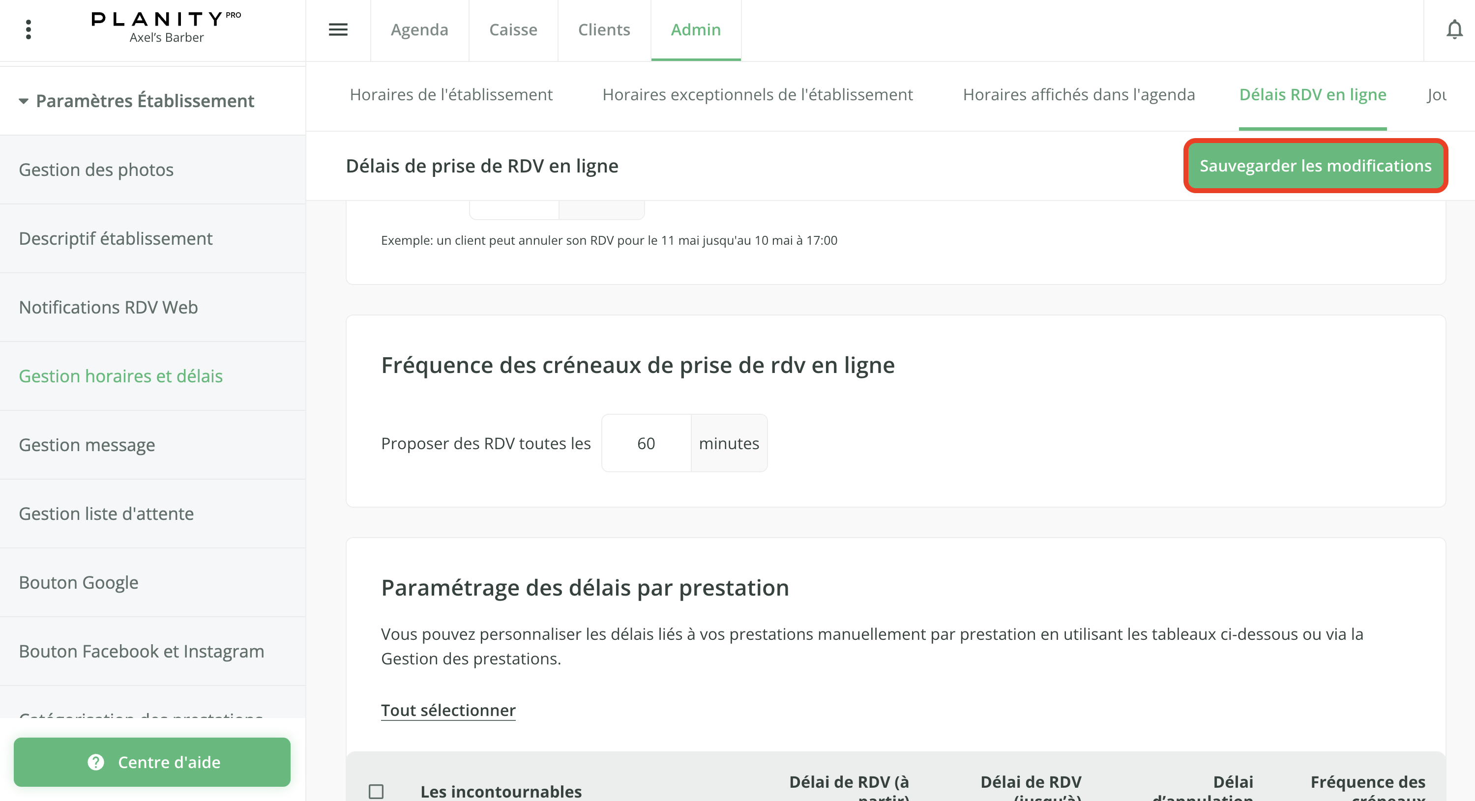 - Cliquez sur l'onglet Délais RDV en ligne.
