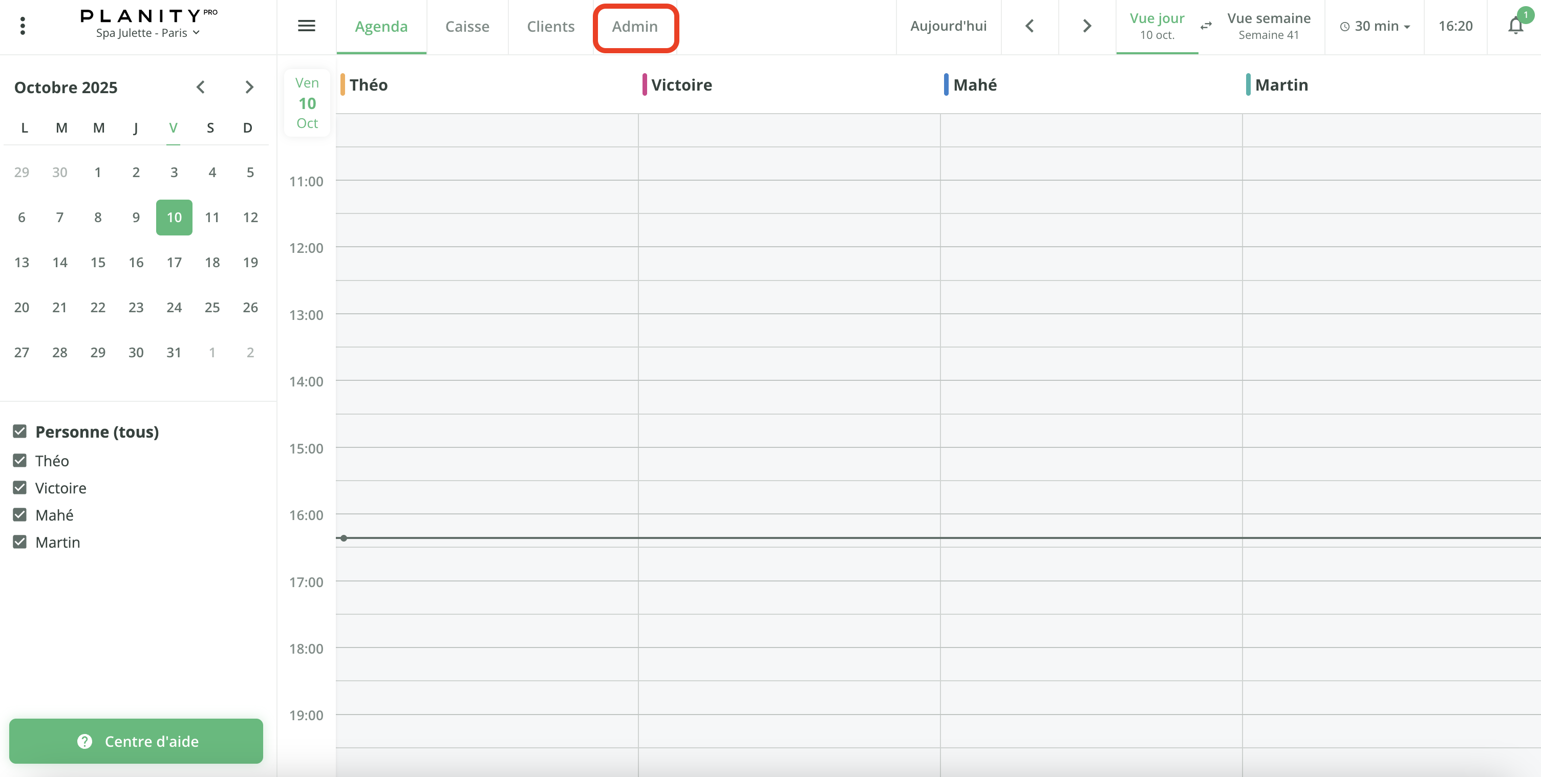- Rendez-vous sur l'onglet Admin.