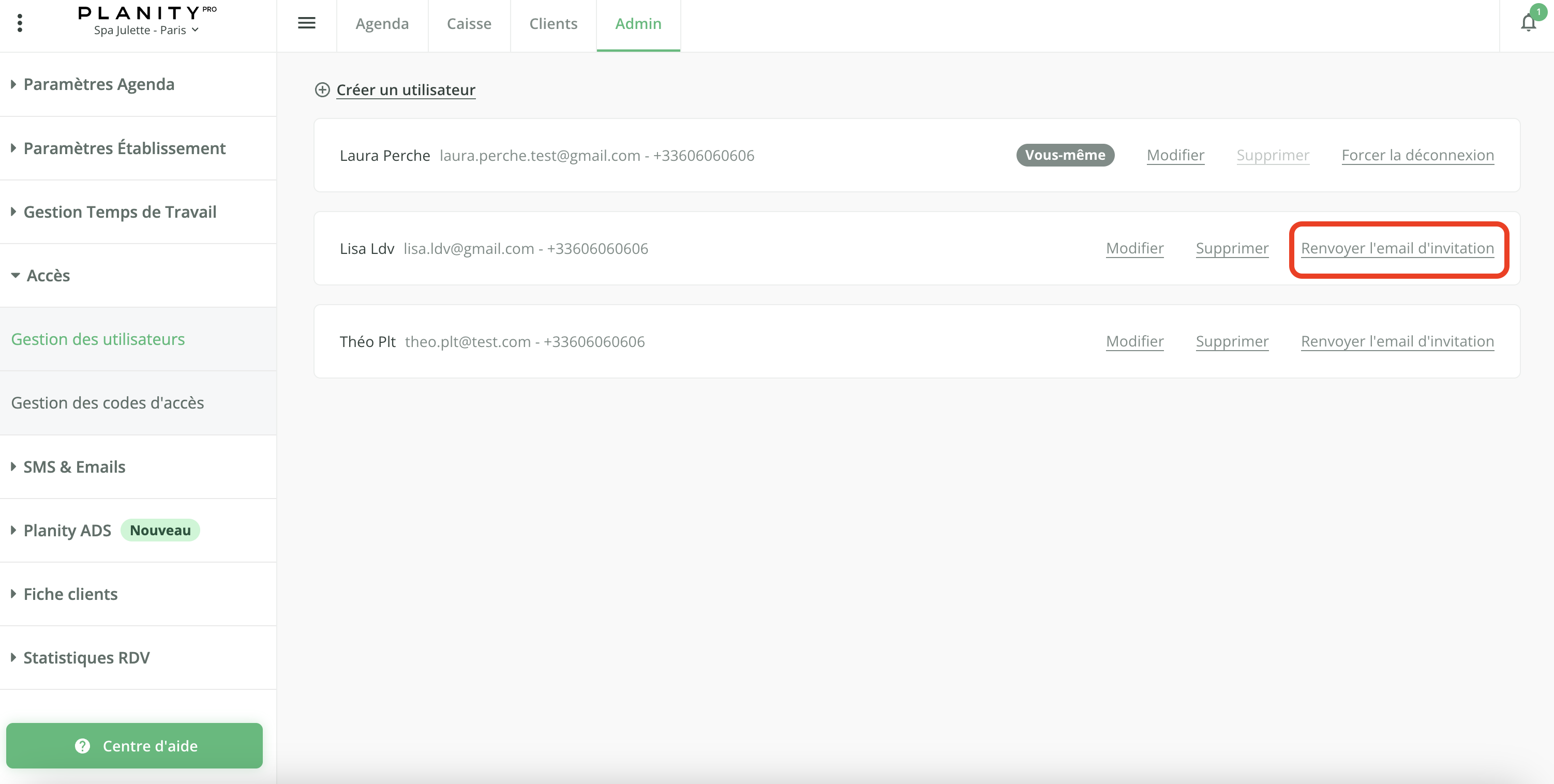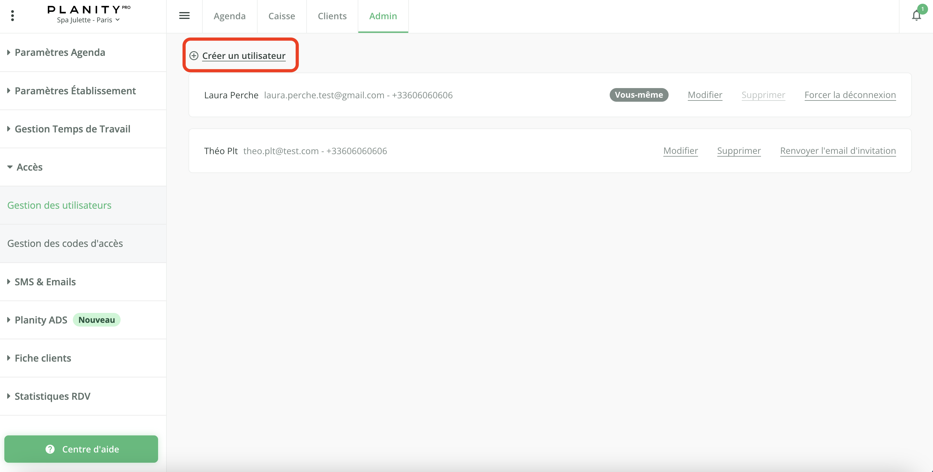 Un utilisateur est une personne à qui vous donnez accès à votre établissement sur Planity Pro (ordinateur, tablette ou mobile).