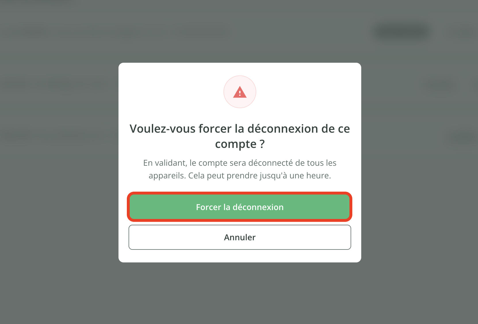 - Confirmez en cliquant de nouveau sur Forcer la déconnexion.