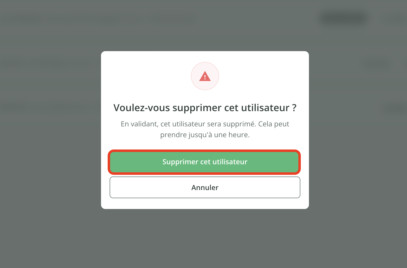 - Confirmez en cliquant sur Supprimer cet utilisateur.