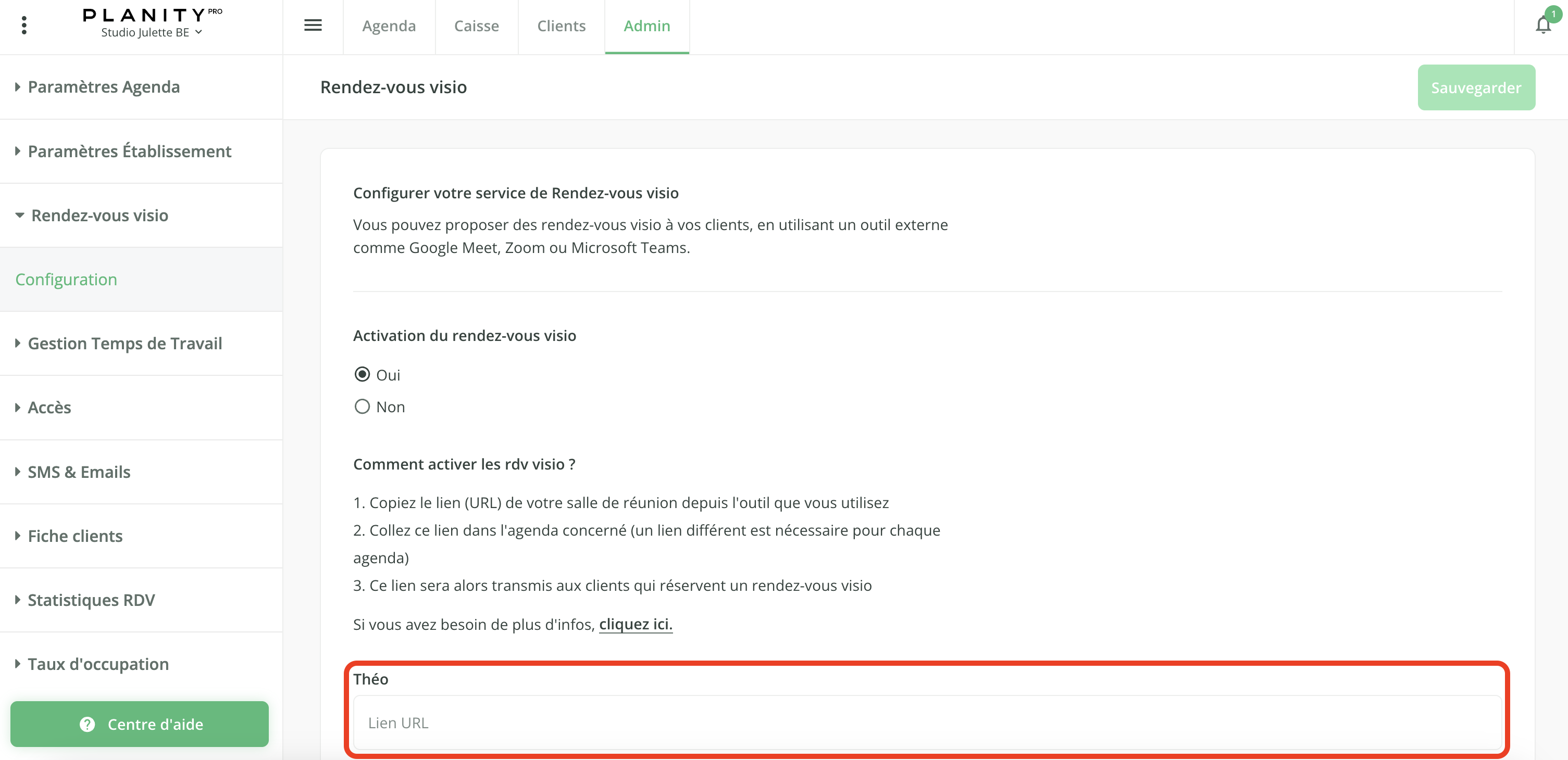 Associer un lien de visioconférence à chaque collaborateur qui proposera des prestations en visio.