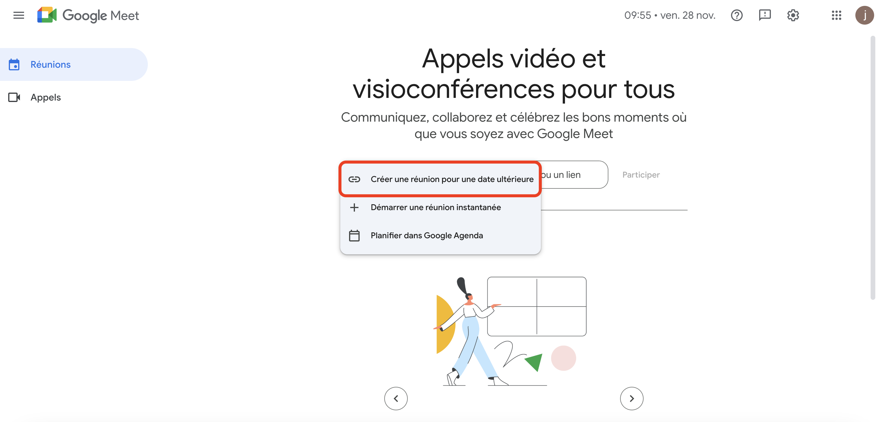 Rendez-vous sur https://meet.google.com