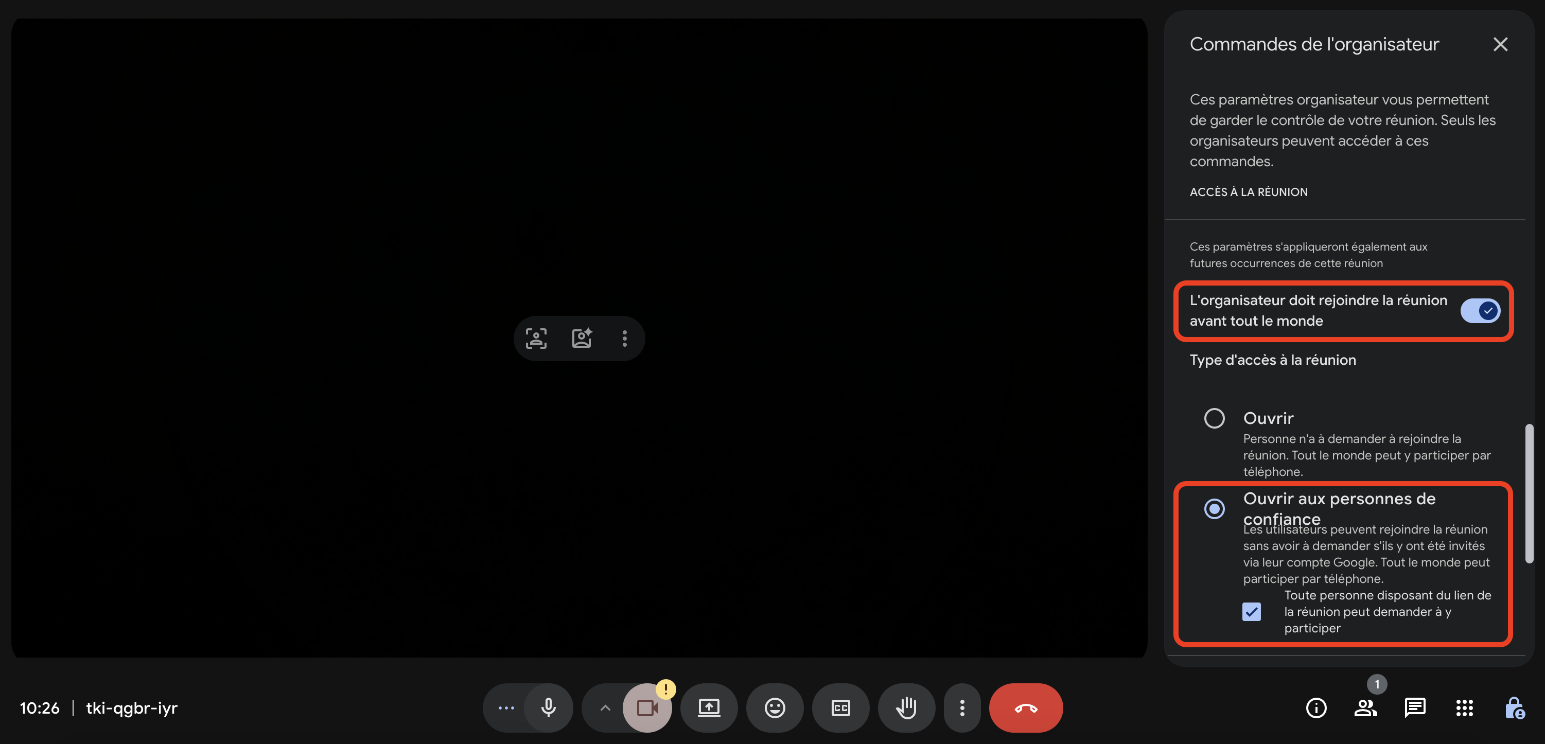 La salle d’attente est maintenant activée pour votre lien de réunion.