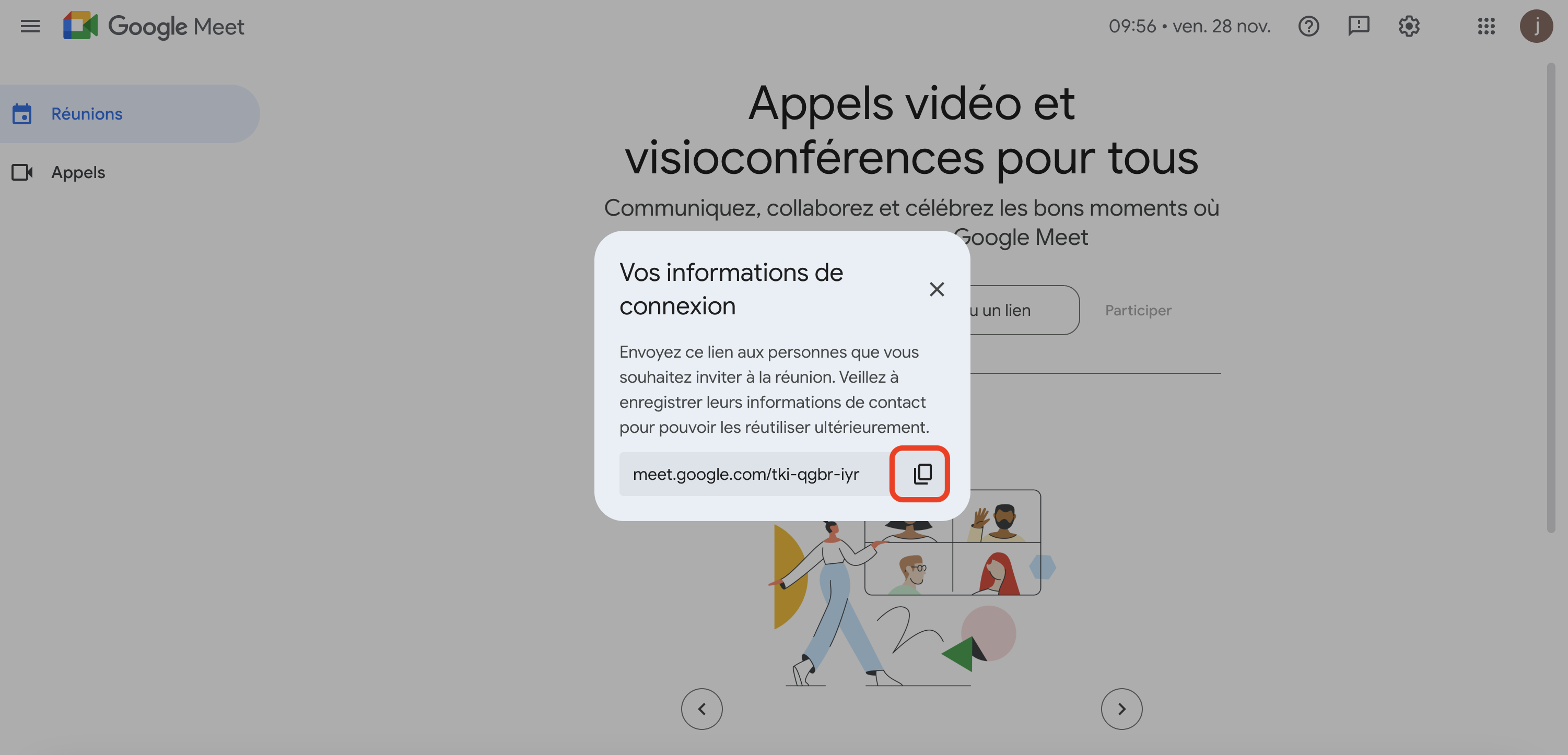 Création du lien de réunion Google Meet