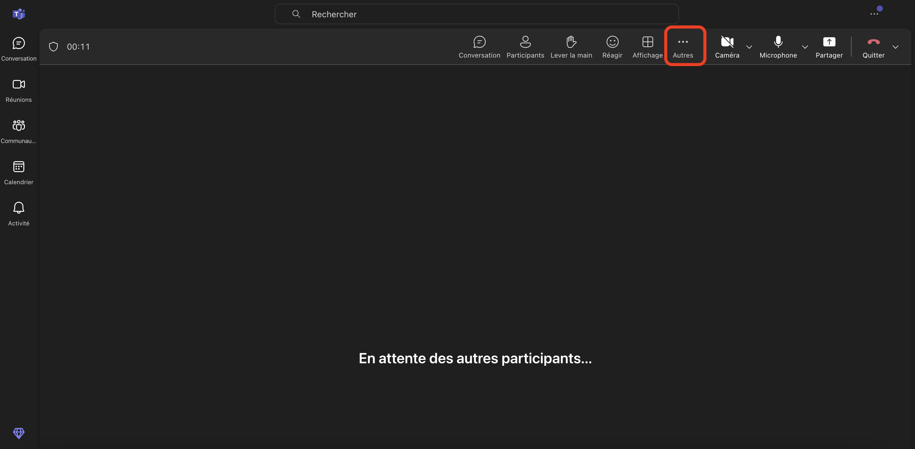 Une fois connecté sur la réunion, cliquez sur le bouton Autres.