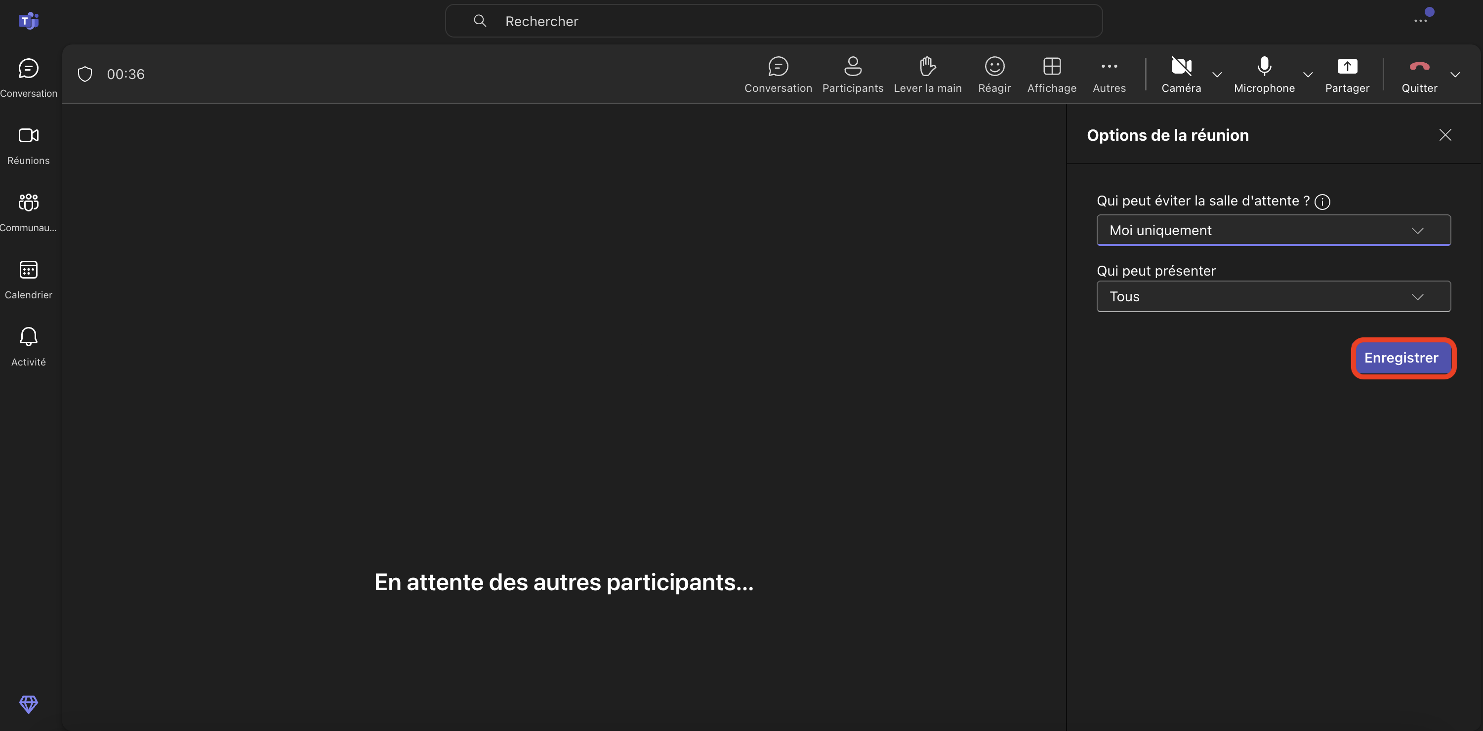 La salle d’attente est maintenant activée pour votre lien de réunion.