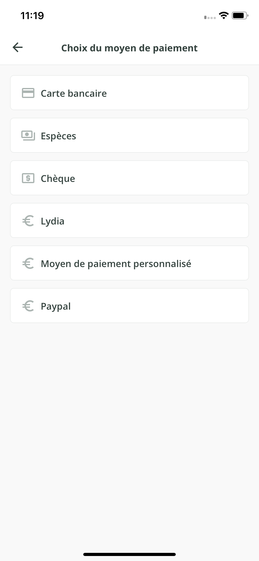 - Sélectionnez ensuite le moyen de paiement.